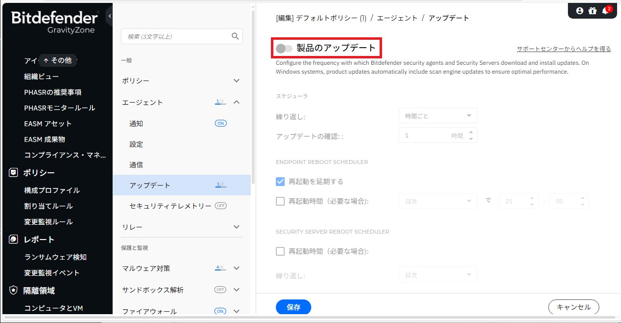 9. 自動でアップデートさせたい端末は、同様の手順で「製品のアップデート」がONのポリシーを適用します