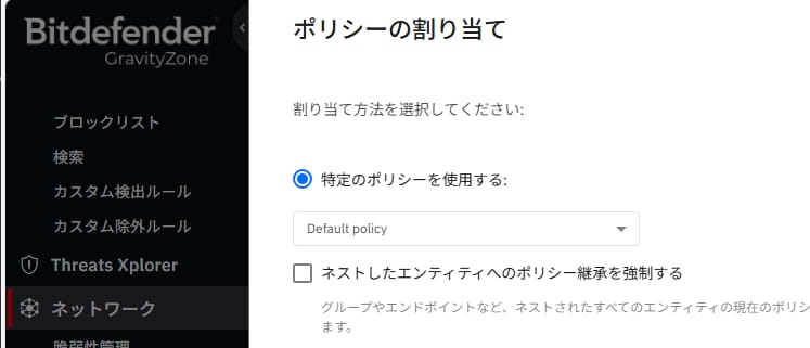 8. 「ポリシーの割り当て」で、今回適用したいポリシーを選択し、「保存」をクリックします