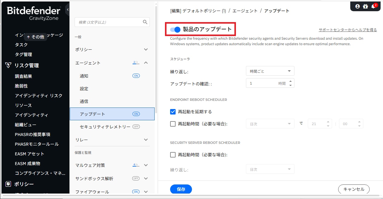 8. ポリシーの割り当て」で、「製品のアップデート」がONのポリシーを選択し、「保存」をクリックします