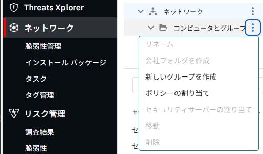 7. 「コンピュータとグループ」の右の ⁝ アイコンをクリックして、「ポリシーの割り当て」を選択します