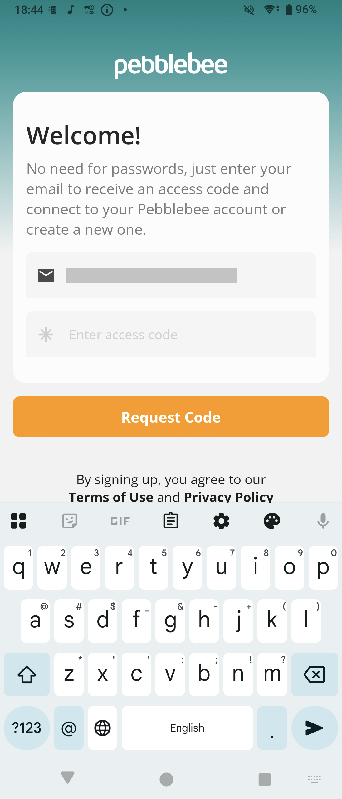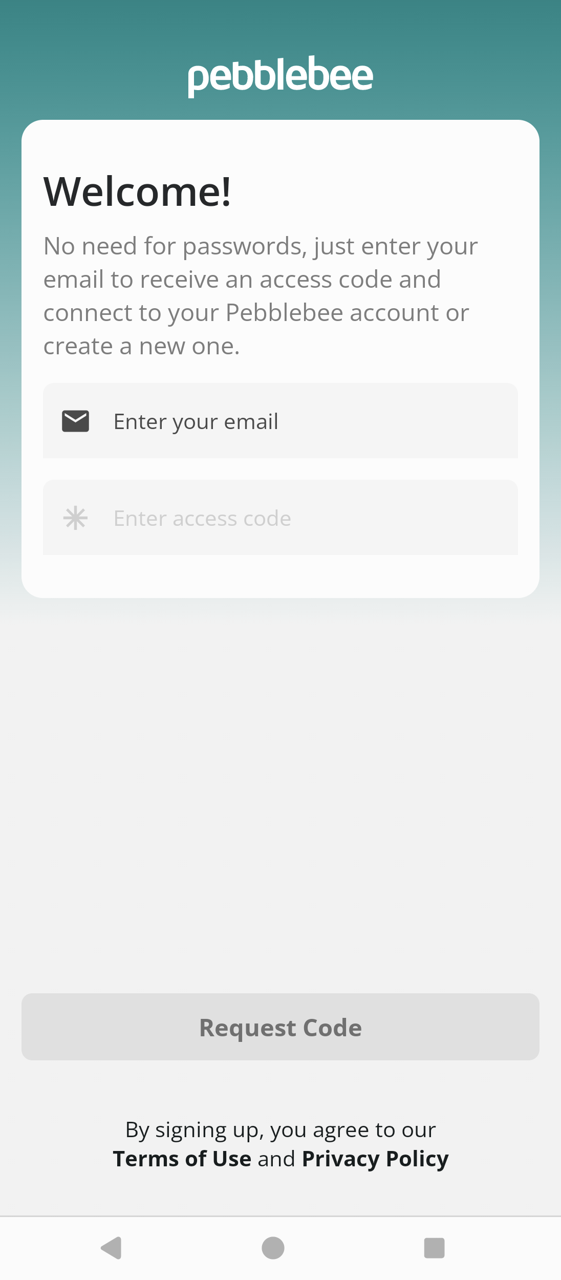 3.「Enter your email」にメールが受信可能なメールアドレスを入力し、 「Request Code」をタップします。