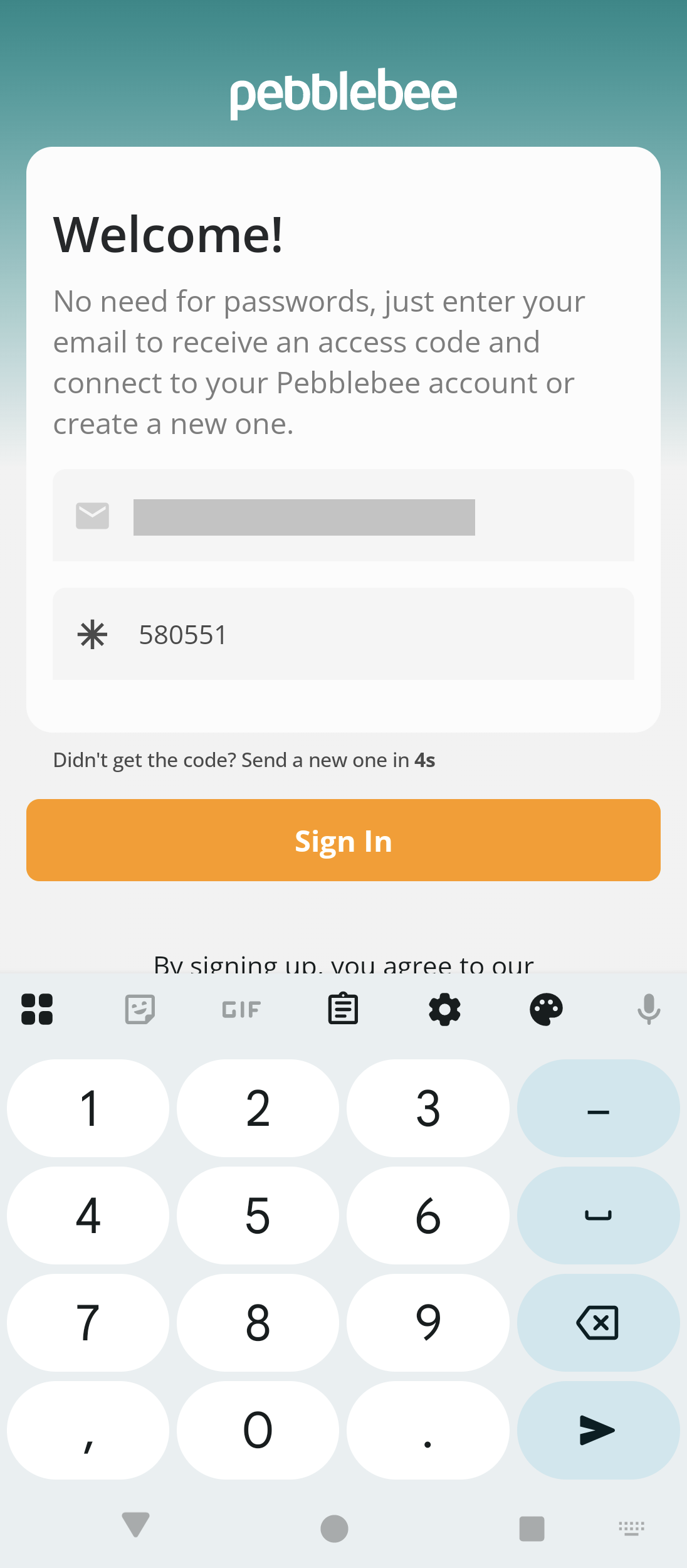 4.届いたメールに記載されたコードを入力し、「Sign In」をタップします。