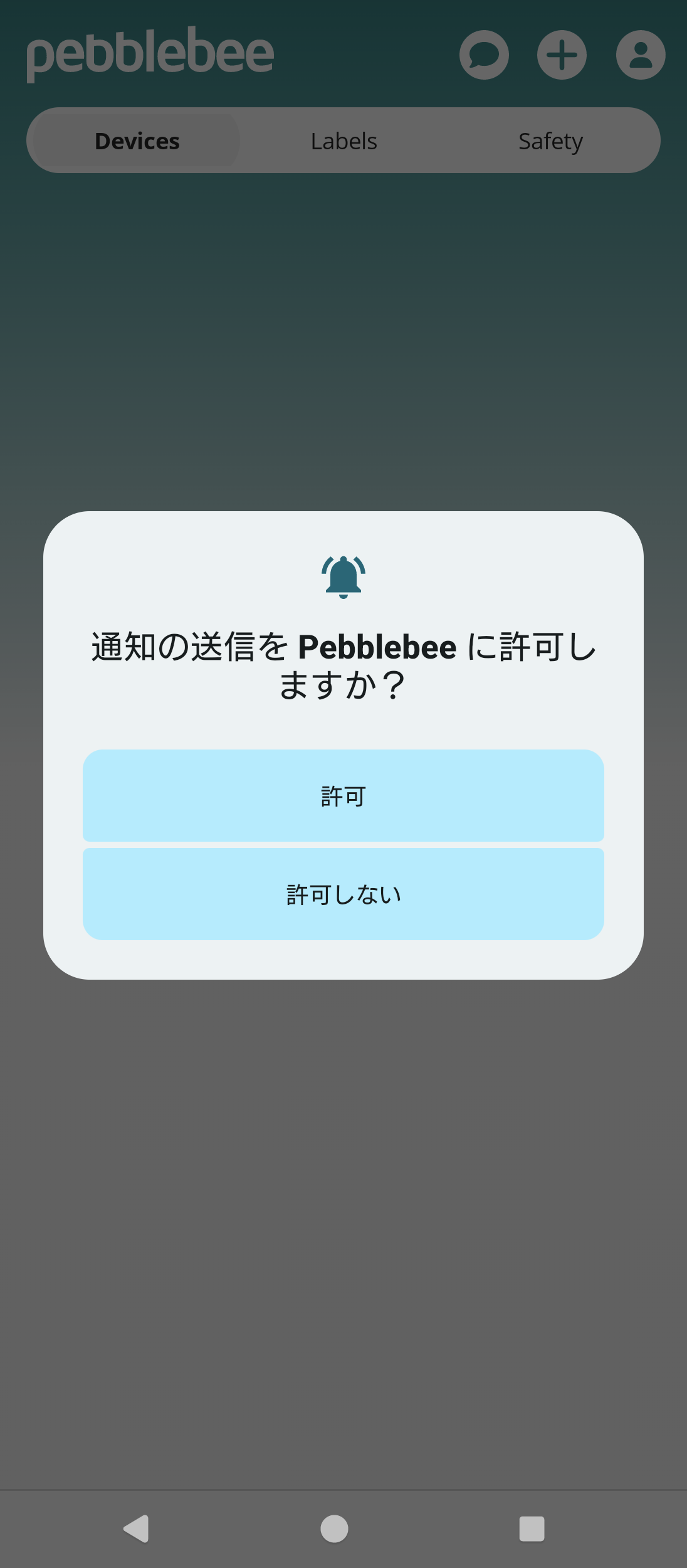 2.「Pebblebee」アプリをインストールして起動します。 本アプリは「Pebblebee Inc.」の公式アプリです。