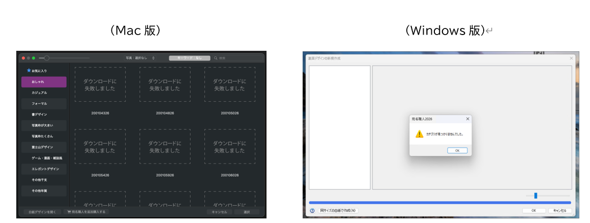 現在、宛名職人(Mac版、Windows版)でテンプレートがダウンロードできない事象が発生しています。
