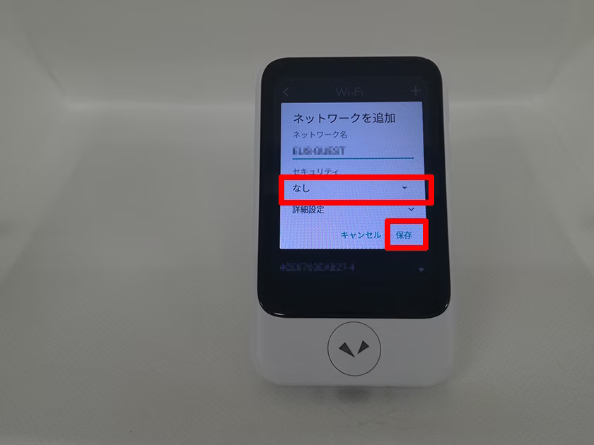 - 「ネットワークを追加」の画面が出るので、ネットワーク名(SSID)を入力して「保存」をタップします。