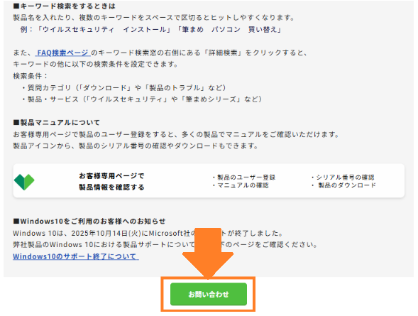 FAQで解決しない場合は、各FAQページ下部の「この製品に関する他のFAQを見る」ボタンをクリックし、