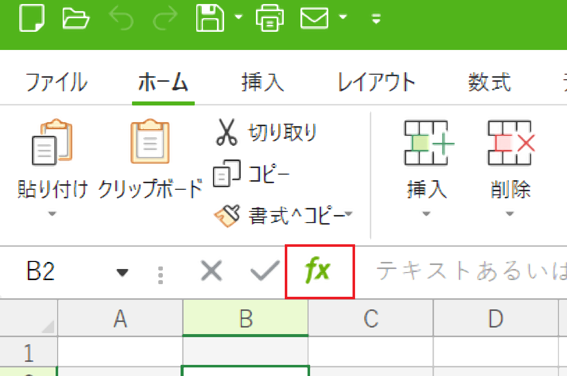 2、「fx」をクリックする